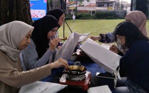 Suasananya seru banget! Peserta duduk santai di bawah rindangnya pepohonan, belajar mencanting bareng pengrajin, sambil diiringi musik akustik dan nikmatin udara sore yang adem. Nggak ngebosenin sama sekali, lebih kayak nongkrong santai sambil ngulik hal baru. Di akhis sesi, semua peserta bisa bawa pulang tote bag hasil karya mereka sendiri, lengkap dengan rasa puas dan pengalaman seru yang susah dilupain.